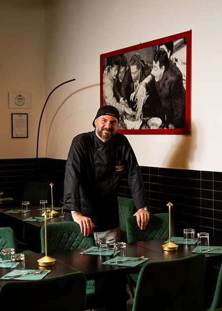 Ogni menù nasce da un ricordo e da un ingrediente vero. Spesso parto da una preparazione di famiglia – come le polpette al ragù o la pasta fatta in casa – e poi la reinterpreto con influenze di altre regioni del Sud che sento affini. La Campania, per esempio, è una grande passione condivisa con tutta la mia famiglia, mentre le seadas, nel menu dolci, tipiche sarde, sono un omaggio a mia moglie.