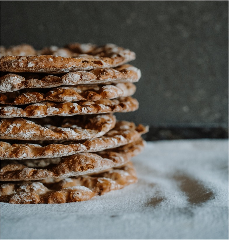 Rotondo, croccante e riconoscibile al primo morso: lo Schüttelbrot è il pane di segale simbolo della tradizione altoatesina. Un tempo preparato dai contadini nei masi, quando la coltivazione dei cereali è stata progressivamente abbandonata, sono stati i panettieri altoatesini a prenderne in mano la produzione. Nel tempo il suo significato è cambiato: da alimento semplice delle comunità rurali a icona croccante della cultura del pane dell’Alto Adige. Oggi lo Schüttelbrot è immancabile nella tipica merenda altoatesina: leggero e digeribile, è apprezzato come snack durante le escursioni e utilizzato anche come ingrediente in ricette tradizionali.