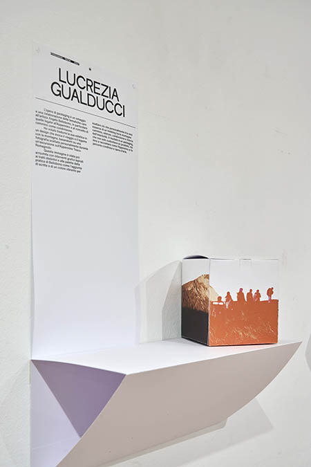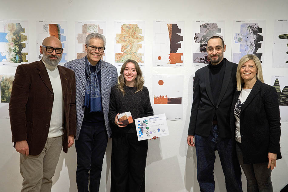 La scelta è ricaduta sul progetto della studentessa dell’ISIA di Urbino (Istituto Superiore per le Industrie Artistiche), Lucrezia Gualducci, apprezzato per la capacità di avvicinarsi all’opera dell’artista, rileggerla e trasformarla in un progetto grafico, mantenendo intatta la poetica originaria e interpretando con precisione le parole chiave indicate nel moodboard: Natura, Comunità e Corpo. Nella mostra collettiva sono presenti circa 35 elaborati, realizzati dagli eccellenti studenti guidati dal Direttore Giuseppe Roberto Biagetti. Le opere sono il risultato della call rivolta all’ISIA di Urbino.