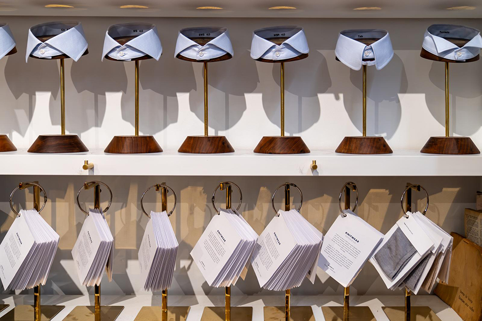 E così, mentre prende forma la confezione di un singolo capo come di un intero total look, trasforma l’acquisto in un momento prezioso, intimo, quieto, un lusso raro in un mondo che corre veloce.