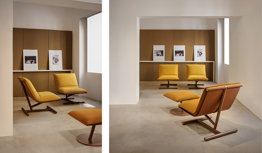 Questa metafora prende forma concreta nella collaborazione con True: nella vetrina della boutique sarà infatti esposta, fino alla fine di aprile, “Farfalla”, nuova interpretazione di una storica seduta progettata nel 1974 da Roberto Lucci e Paolo Orlandini, oggi riletta in chiave contemporanea da Folco Orlandini per True. La sedia imbottita, icona dal design leggero e riconoscibile, unisce storia, eleganza e audacia in un oggetto dal forte valore simbolico. La forma evoca il battito d’ali da cui prende il nome: ogni seduta vive da sola, ma accostata ad altre costruisce una composizione organica, dinamica, naturale. L’originale si trasforma, ma non si perde. La nuova versione è più slanciata, la struttura più tesa e definita: un equilibrio armonico tra memoria e trasformazione.